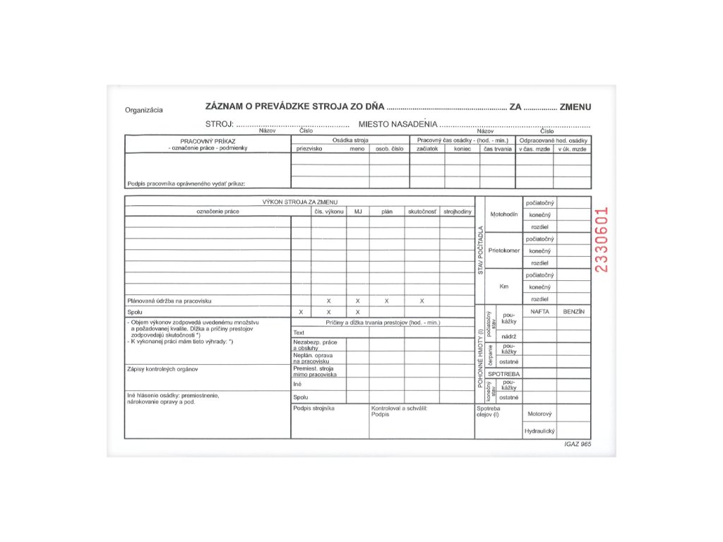 Záznam o prevádzke stroja A5 - samoprepis (965)