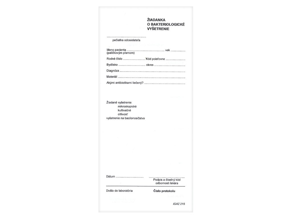 Žiadanka o bakteriologické vyšetrenie 21x10 cm (215)