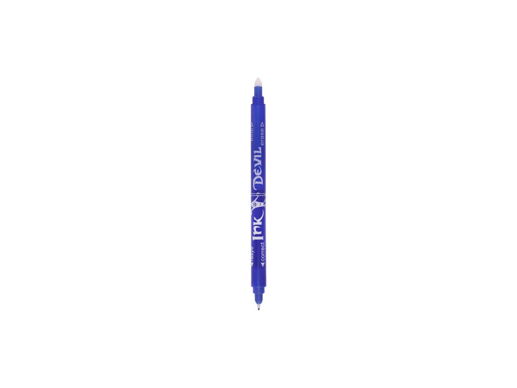 - jeden hrot zmizíkuje modrý atrament plniacich pier, druhý hrot prepisuje vyzmizíkovanú stopu