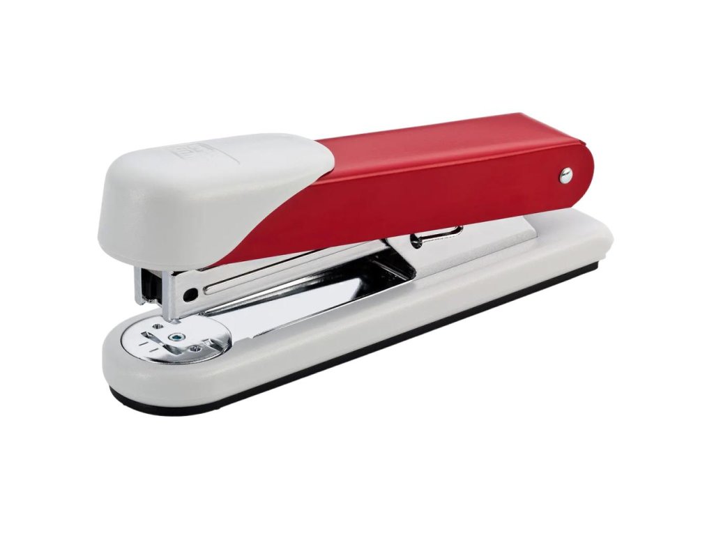 Cenovo výhodná celokovová kancelárska zošívačka v klasickom dizajne. Kapacita náplne 100 spiniek 24/6 alebo 150 spiniek 26/6. Hĺbka zošívania 6,5 cm. Hmotnosť 200 g. Záruka 5 rokov.Farba: červená/sivá