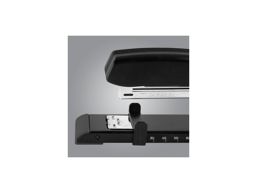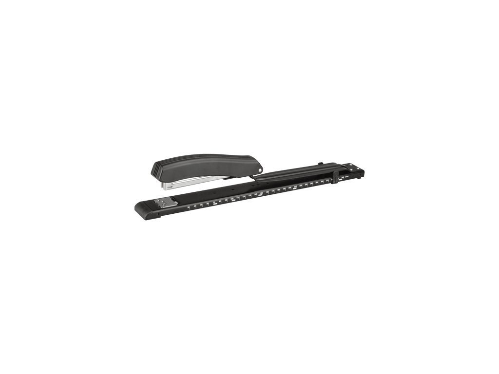 Plastová zošívačka s dlhým ramenom - 30 cm vhodná na zošitie kníh, brožúr a pod. Výkon zošívačky je do 10 listov. Vhodná náplň veľkosti 24/6 a 26/6. Nastaviteľné vedenie papiera a integrované pravítko. Otočná nákova na zošívanie alebo pripínanie.Dodatočné parametre