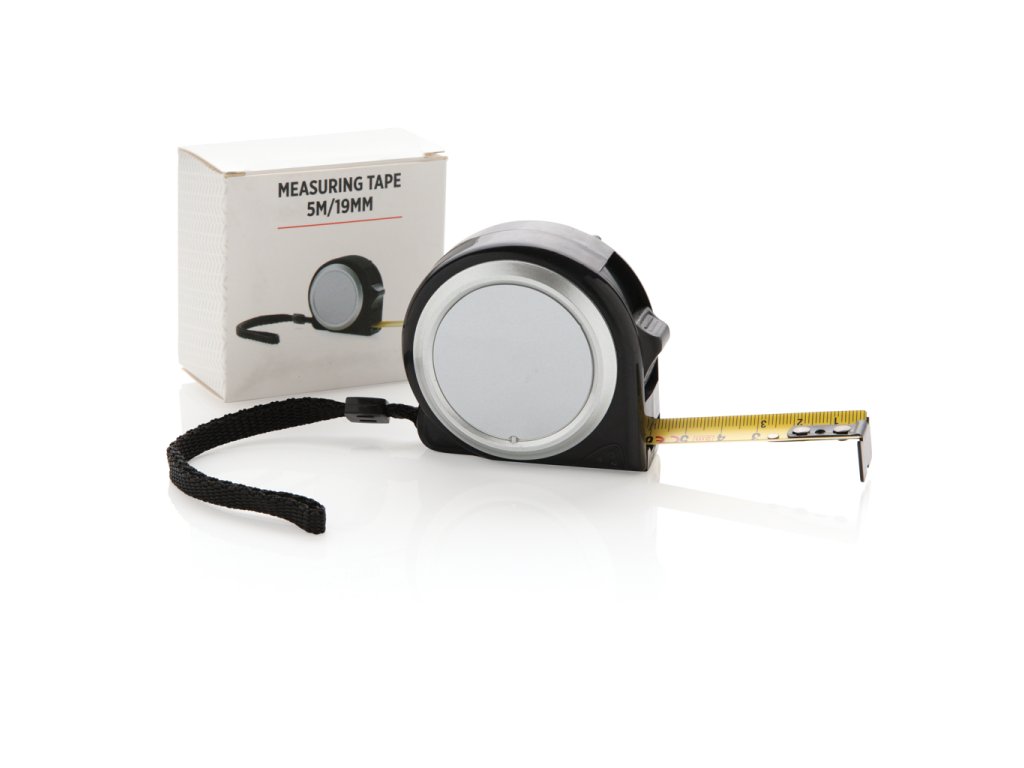 Kompaktný zvinovací meter ABS s príchytkou a pútkom. Zvinovací meter s dĺžkou 5 m a šírkou 19 mm a s háčikom.Dodatočné parametre
