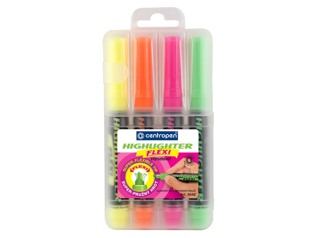 Zvýrazňovač CENTROPEN 8542 FLEXI NEON - sada 4 ks