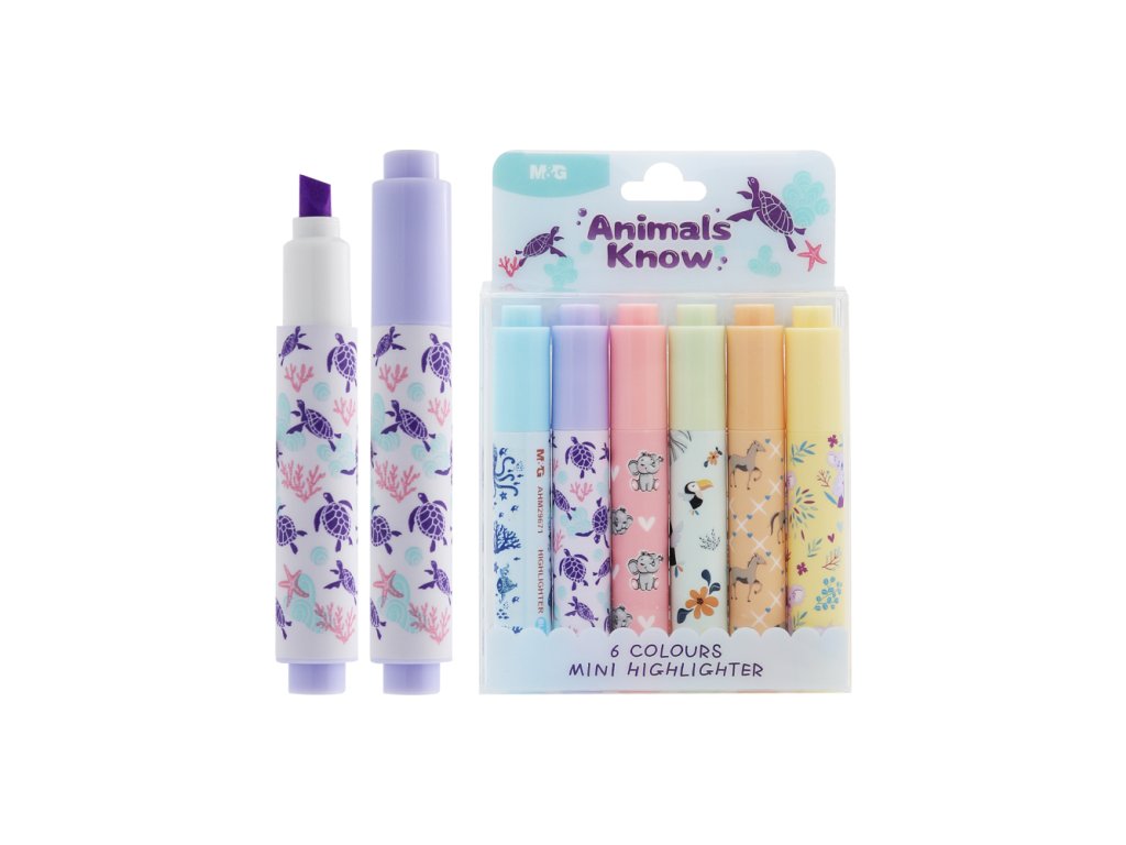 Zvýrazňovač M&G Mini Animals Know - sada 6 ks